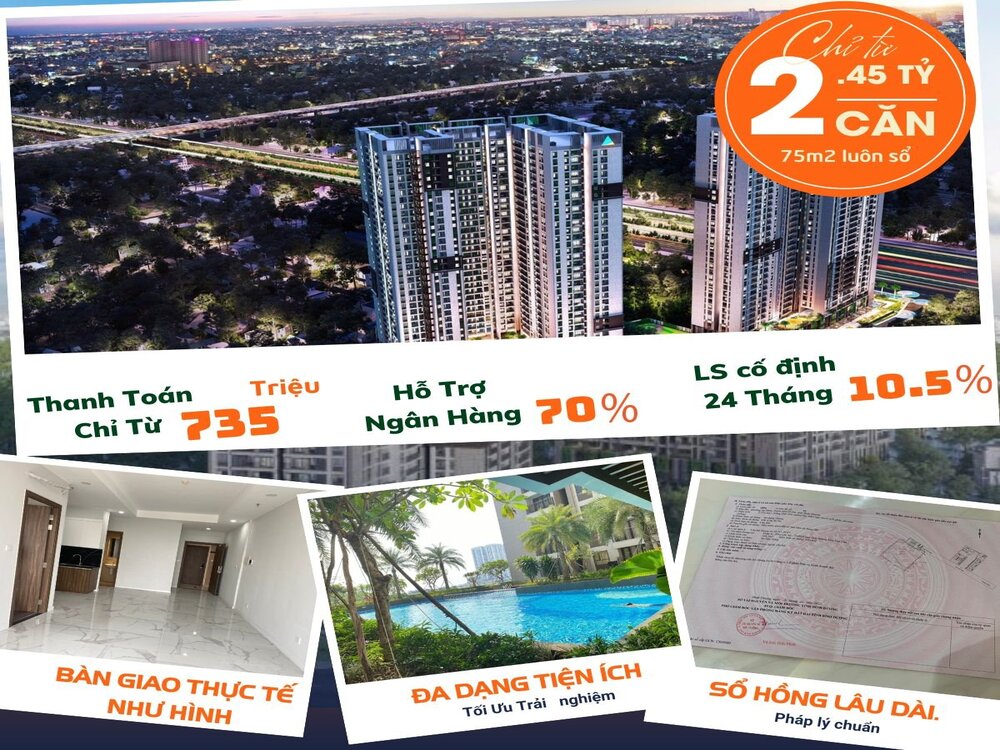 - Diện tích: 76m2, căn 2PN, giá chỉ 2,45 tỷ.