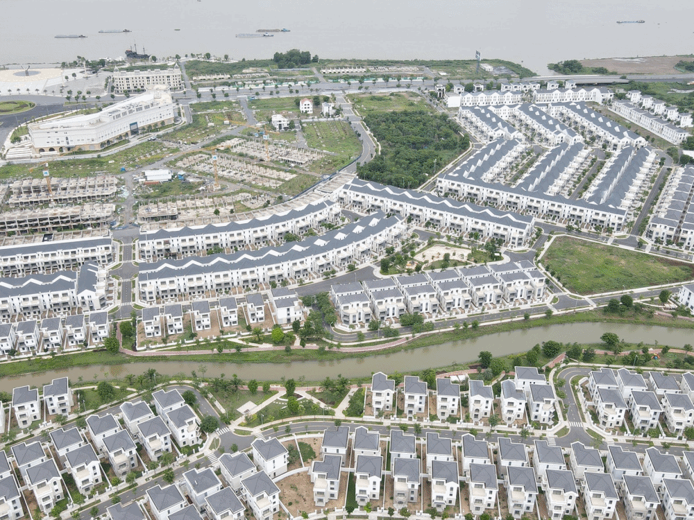Khu đô thị sinh thái 1.000ha, đã và đang bàn giao cho khách hàng loại hình nhà phố, Biệt thự, Shophouse xây dựng đồng bộ 1 trệt 2 lầu, điện âm, nước âm, bao phủ cây xanh, mặt nước 70%.